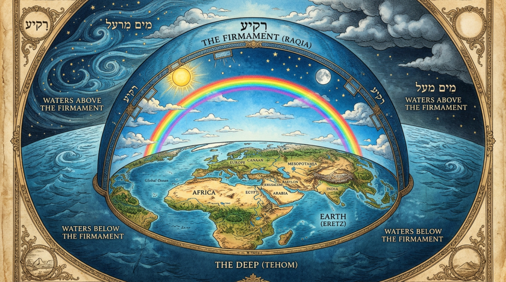 A literal Bible reading demands zero contradictions with the plain text. The Hebrew cosmology aligns perfectly—it is the Bible’s model. Every detail (stationary flat disk, solid firmament with windows, lights set inside, great deep, Sheol beneath, immovable foundations) matches Genesis 1, the Flood, Babel, Jonah, Job, Psalms, and Isaiah without addition or omission.